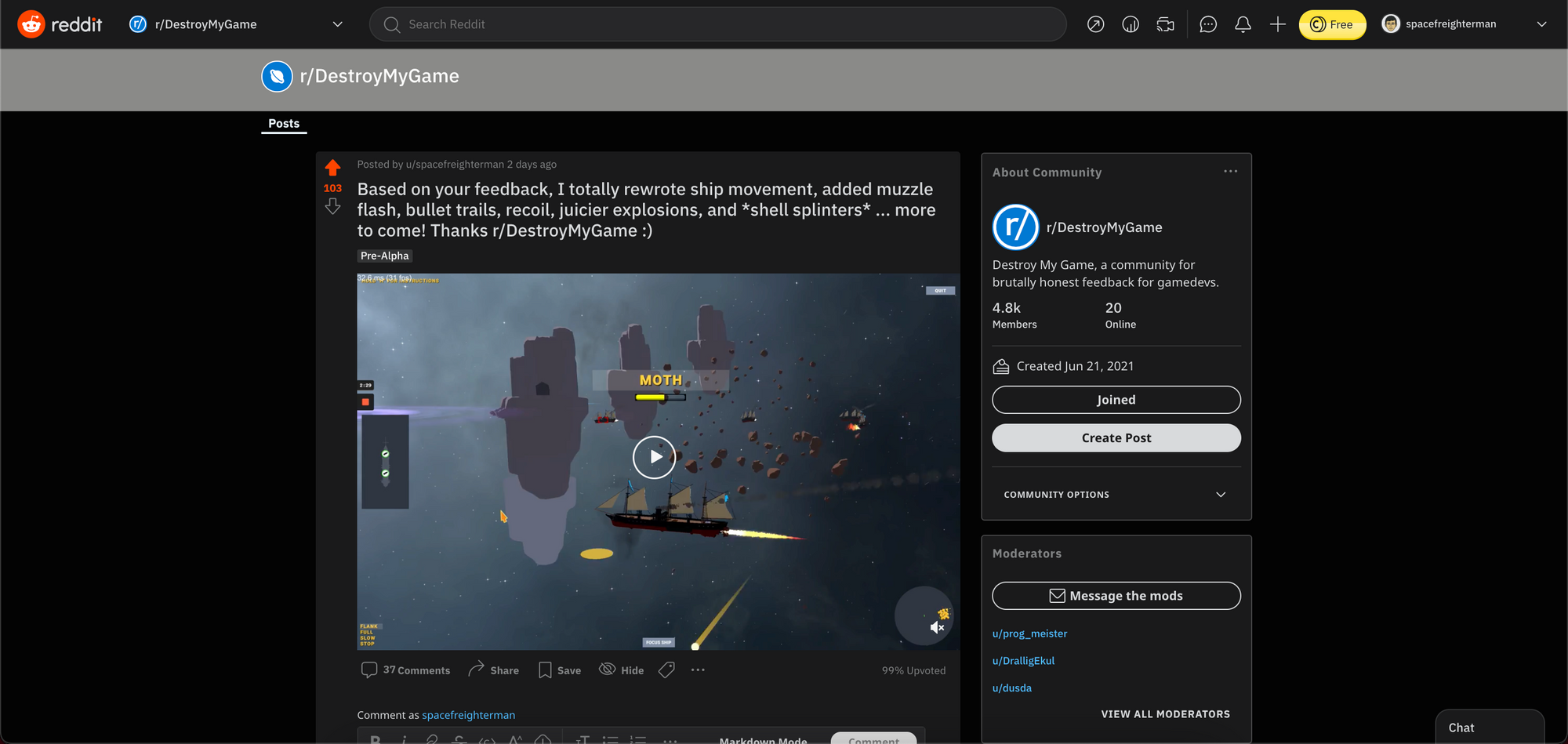 - r/DestroyMyGame - Although small, best for getting real feedback about your game, and the most helpful place for me to post in the last year. Make concentrated asks and iterate. A lot of people are afraid that criticism on this page can be harsh but I've never seen it as difficult or negative, at least when it has come to our project. 5k members